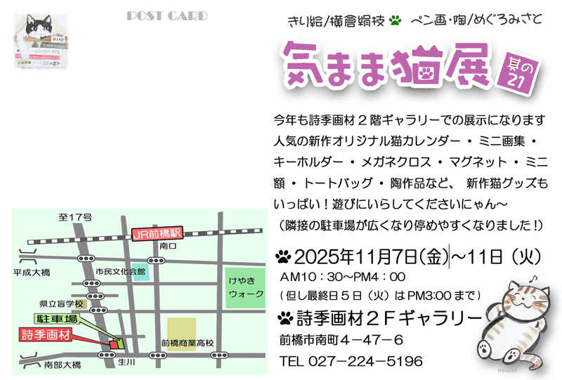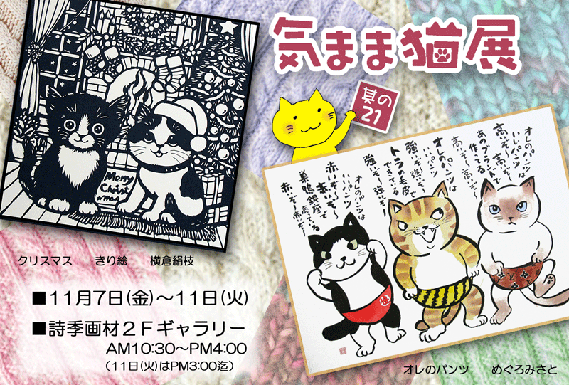 横倉絹枝きり絵の部屋 paper cutting art / YOKOKURA KINUE KIRIE NO HEYA 横倉絹枝の切り絵を掲載しています画像・文章の転載を禁じます 切り絵の森美術館での展示がはじまりました! ![]() 2025/10/4(土)-12/21(日)富士川切り絵の森美館にて個展予定 (山梨県富士川クラフトパーク内の美術館です) 山梨県富士川クラフトパーク - Yamanashi Fujikawa Craft Park ● ![]() ![]() 11/7-11/11前橋詩季画材2Fギャラリー 第21回気まま猫展開催 恒例の新作カレンダー原画展です。(隣接の駐車場が広くなりました!) ● 10/2-10/5きり絵ヨーク作品展/前橋市民文化会館無事終了しました、 本当に沢山の方がいらしてくださいました、ありがとうございました。 10/1-10/31切り絵さくらの会作品展/東和銀行本店 (上記は私が講師をしております教室の展示です) |